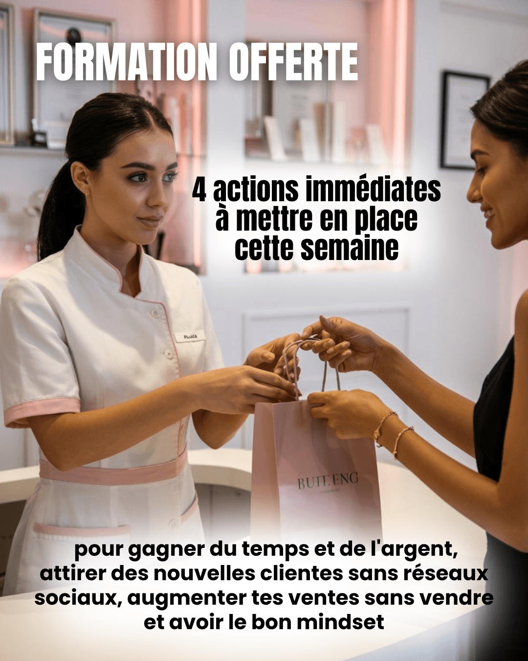 ✔️ Vidéos bonus → 4 actions immédiates à mettre en place cette semaine pour gagner du temps et de l'argent, attirer des nouvelles clientes sans réseaux sociaux, augmenter tes ventes sans vendre et avoir le bon mindset
