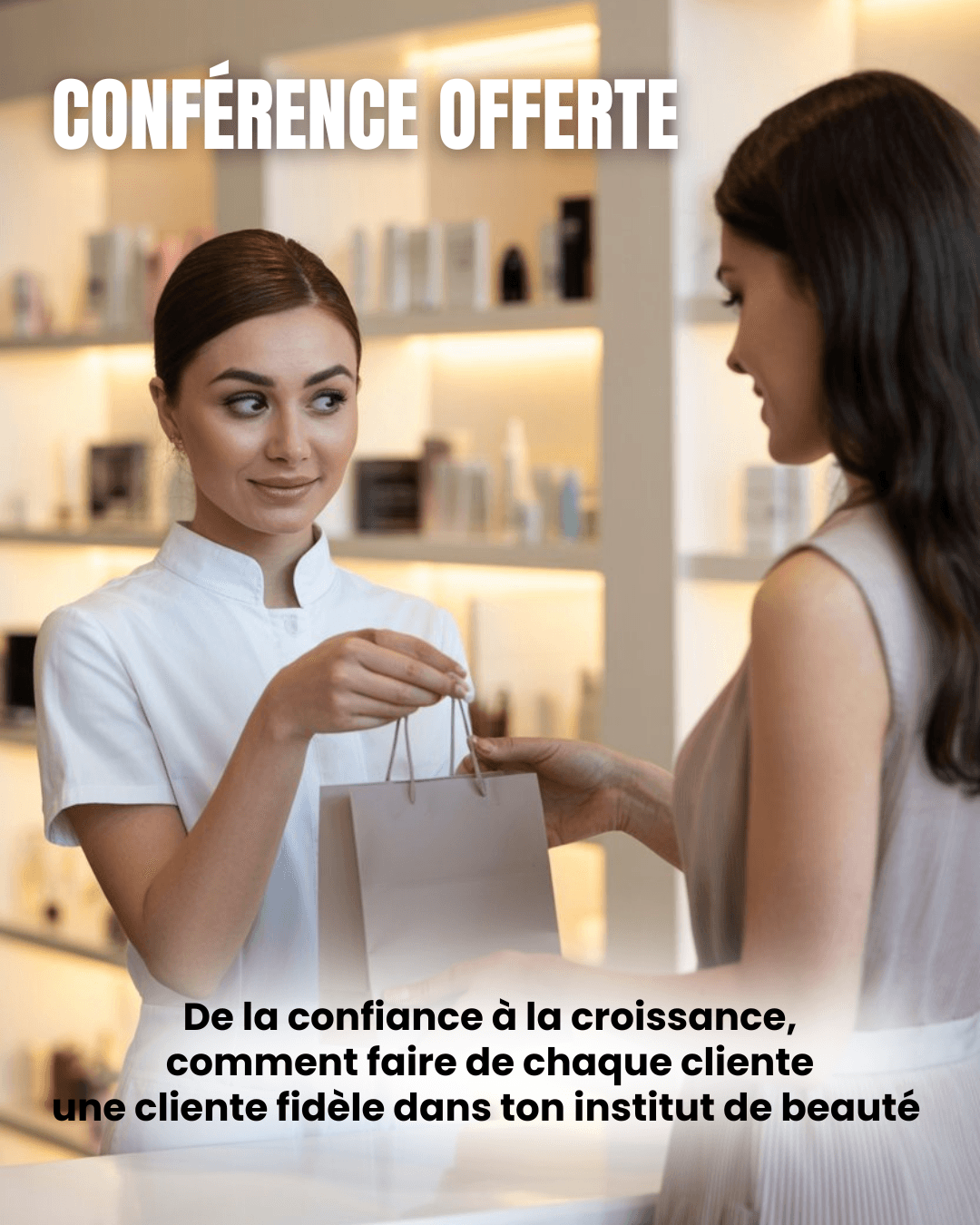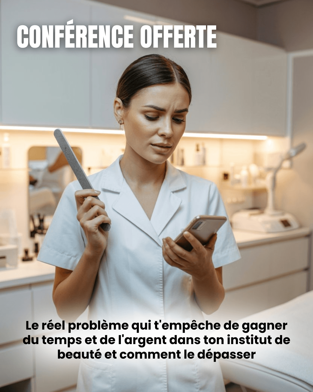 ✔️ Conférence 1 → Le réel problème qui t'empêche de gagner du temps et de l'argent dans ton institut de beauté et comment le dépasser